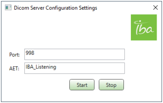 Start / Stop button: Click to start / stop listening to the DICOM data. - Click the Start button to start listening when the local listener port is used.