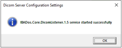 clicking the Finish button, the Dicom Server Configuration Settings dialog will open after provided