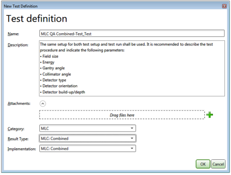 Result Type: Depending on the test, select Result Type: MLC: Picket Fence / Leaf Position Accuracy / Moving Window / Segmental IMRT for an indiviual test or MLC: Combined for all test results - Click OK