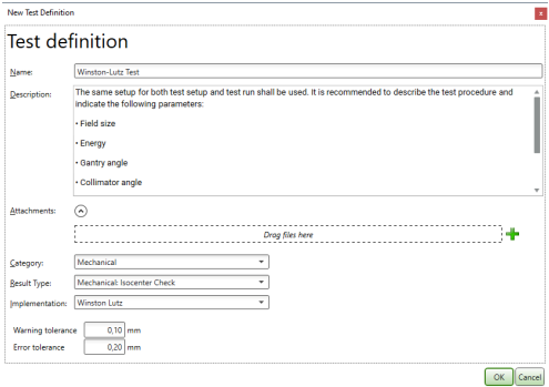 - Click New in the ribbon. In the New Test Definition dialog, enter / select the following information, and then click OK.