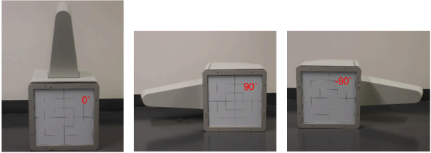 The Sphinx Compact can be used with Gantry at 0°, 90° and 270° (see an illustration below). The orientation of the Sphinx Compact needs to be entered into the software for the test (see see Section 2.2.5, myQA Machines PT Reference Guide).