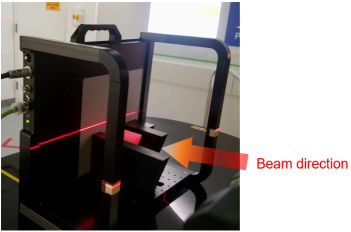 following days’ setup, compare the positions of the four fiducials with those in the reference image. If there is difference, move the PPS so that the position of the phantom is the same every day. - Verify the laser matches the markers of the phantom and scintillator.