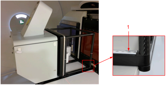 - Place the index bar (1, belonging to the treatment system) of the patient coach to a pair of index notches (2) at the desired position.
