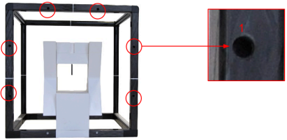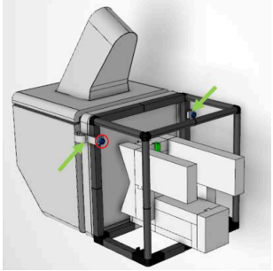 - At a location shown below, place a clip across the contacting frame edges of the Sphinx phantom and Lynx PT. If necessary, turn the knob so that the clips holds on position.