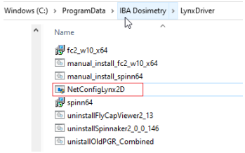 - Double click NetConfigLynx2D.exe in C:\ProgramData\IBA Dosimetry\LynxDriver. Once the tool stop