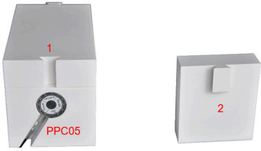 - Press the PPC05 chamber to the chamber slot (1) until the surface of the chamber is flat to the surface of the block.