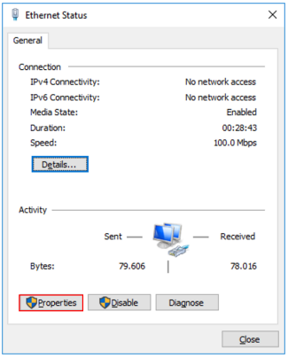 - Click Close to close the Ethernet Properties window.