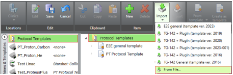 A protocol template can also be imported from a file: click Import in the ribbon, select From File..., and