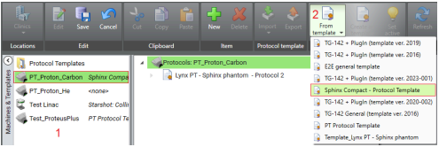 A protocol template is intended be used for creating similar machine protocols later. It can be imported from a file or created from scratch. The beam type will not be specified in a protocol template.