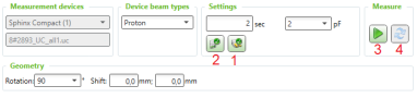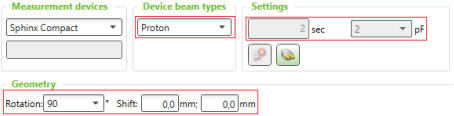 - Check the measurement settings in Measurement devices, Device beam types, Settings, and Geometry.