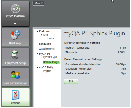 - Defect pixel correction applied. The defect correction parameters from the Sphinx Settings in the myQA Platform - Options workspace.