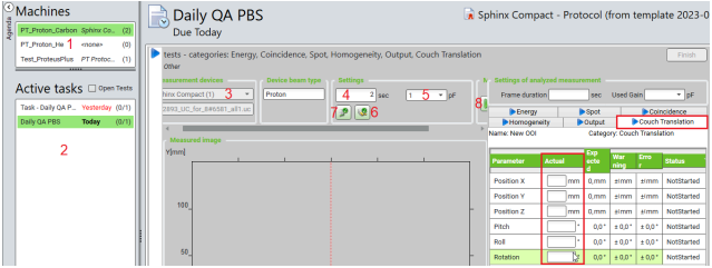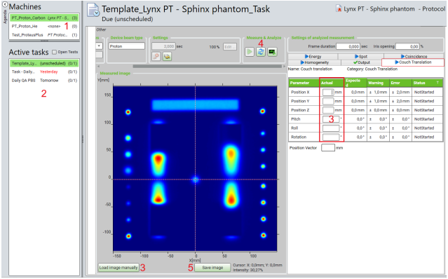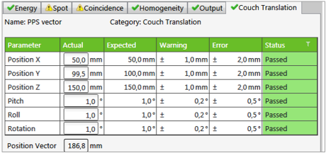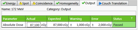categories, Energy, Homogeneity, Spot, and Coincidence are automatically executed. - Perform analyses for the test categories, Output and Couch Translation (see Section 7.2 for the description of the tests).