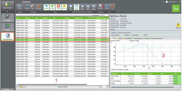 - Click to select a test in the list (1), its test information will be displayed in the right panel (2).