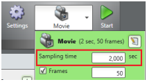 Open the Movie mode dropdown menu and enter the correct number in the Sampling time box. - Set the LINAC to, e.g., 6 MV, 100 MU, 600 MU/min. Turn on the beam and click the Start icon.