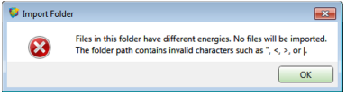 Note: The *.opg files in a frameset must have the same energy level and thus only the folder containing files with the same energy can be imported as a folder. Moreover, the folder path cannot contain any of the following characters: / ? < > \ : * |. Otherwise, a popup warning will appear, and no files will be loaded: