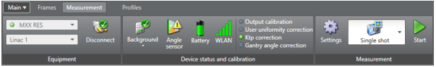 - Click the Measurement Mode icon in the middle of the Measurement group in the Measurement ribbon and select and define a measurement mode, e.g., the Online mode (see Section 6.3, myQA Platform Instructions for Use).