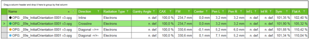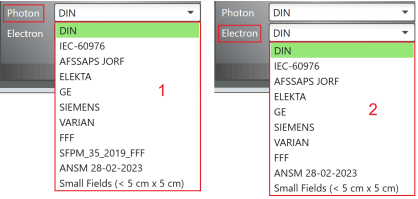 Provides a list of photon (1) or electron (2) beam analysis protocol for analysis: