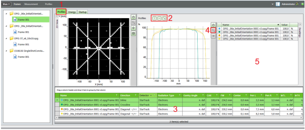 - Select the profile(s) (2) to be displayed. The parameters of the displayed profiles are shown in the result table below (3).