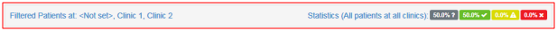 The clinic sites selected to be displayed are shown on the left of the top bar. However, on the right-side, the overall status is shown for all patient related projects.