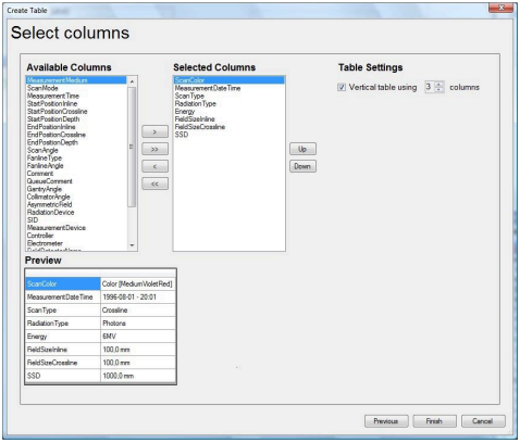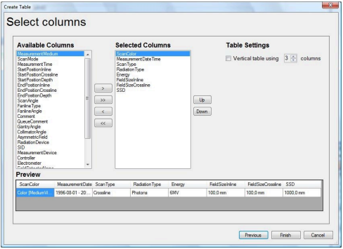 - To change the order of the columns, select a column and click the Up or Down button.