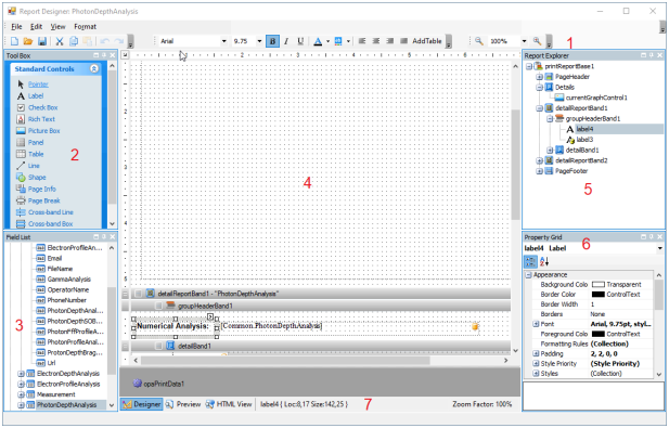 5: Report explorer - displays the design in text view.