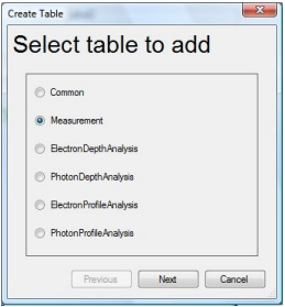 Report Designer – Create table dialog
