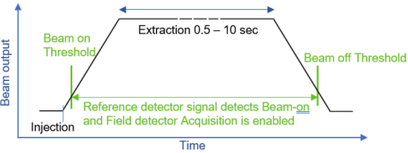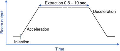 The operation cycle of synchrotrons can vary from approximately 2.5 to 10 s. A portion of this time is allocated for acceleration and deceleration of the beam.