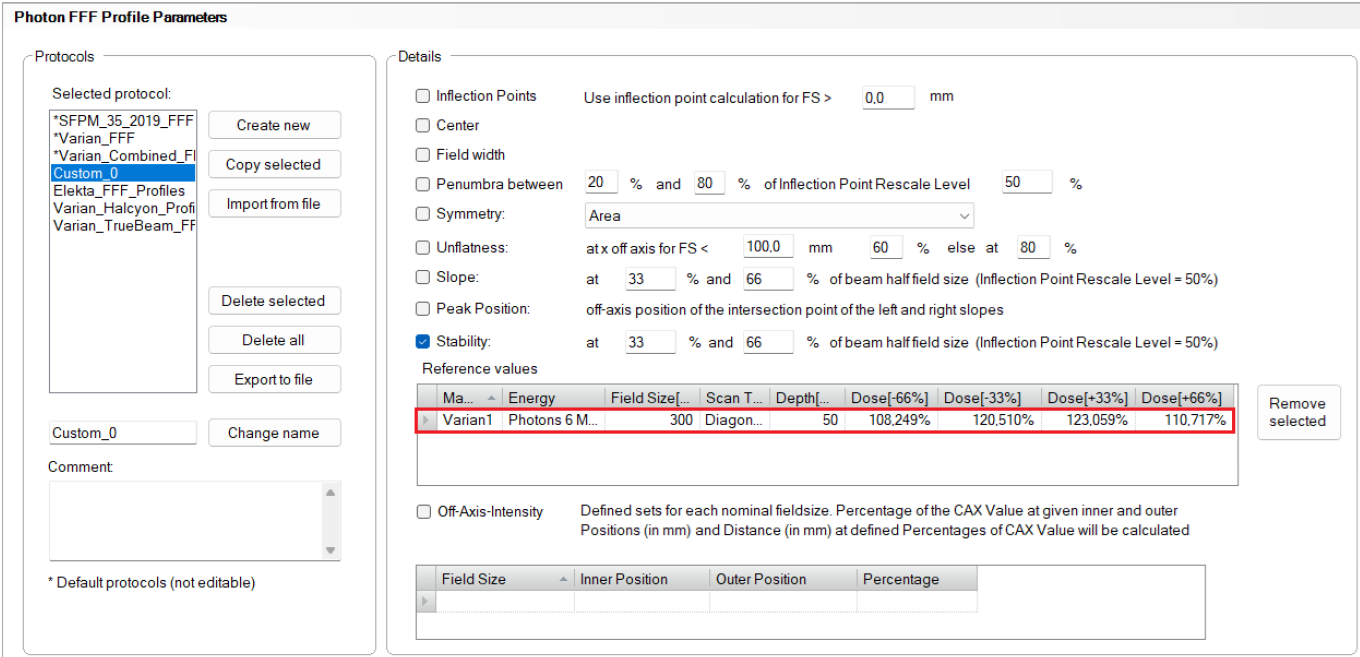 - The stability reference will appear in the Photon FFF Profile Parameters.