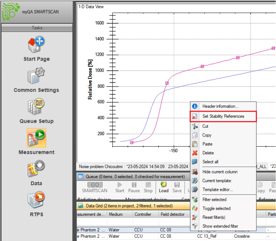 - In the Data Grid, right-click on the measurement data, and select Set Stability References.
