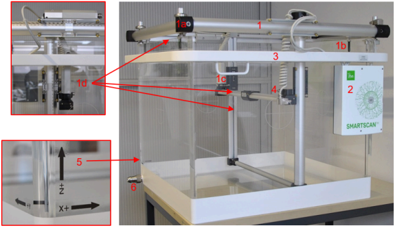 on XZ-walls (200 L) and slanted bottom for easy draining. - A three-dimensional high precision servo mechanism, which includes: