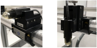- Install the water level detector in the phantom with the large universal holder. Use the CCU hand control to move the detector to the desired water level. For filling, mount the detector horizontally (below left); for emptying the water, mount the detector vertically (below right) and move it to the Slowest position.