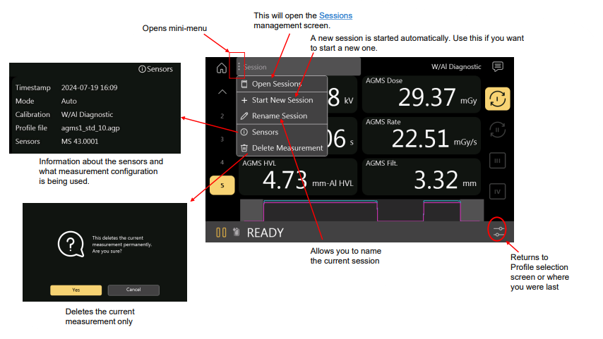 If an ion chamber is used, on the first measurement it Touch the waveform anywhere