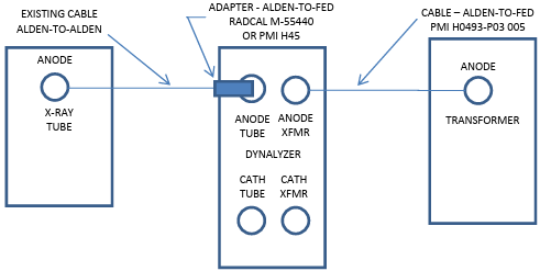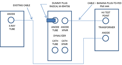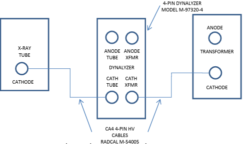 The setup as shown in Figure 4 may also be employed in grid-pulsed applications to accurately determine anode kVp and x-ray tube current. This technique does not measure cathode kVp or filament current because the cathode side of the Dynalyzer is not connected.