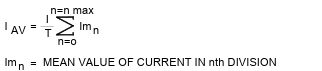 However, close inspection will reveal that this is not the case. Because the current is emission limited, the current will increase with the lower kV values, but at some point, will saturate (see Figure 12). The formula above is thus no longer valid and graphical integration of similar areas will yield a better value. Figure 13 illustrates the sectioning of the current waveform into triangular and rectangular areas for integration. Division of the waveform into equal width segments is a second approach to graphical integration as shown in Figure 14. The easiest approach would be to take 10 values of the current, equally spaced in time in the period of one cycle, and add them together and divide by ten.