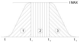 Although there is some deviation from this value, the effective exposure time of a three-phase generator should be measured between the intersection of 75% or the kVp value with time. This allows the start-up pulse area H (and the capacitance trailing effects) to be ignored.