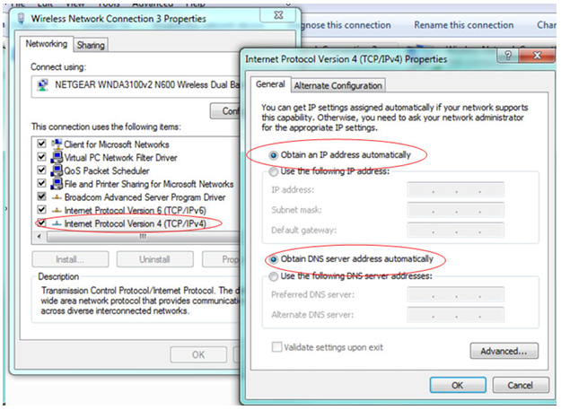 NOTE: Internet Protocol Version 4 (IPv4) must not be set to a fixed IP address. IPv4 must be set to “Obtain an IP address automatically” and “Obtain DNS server address automatically. Contact us if any issues arise.