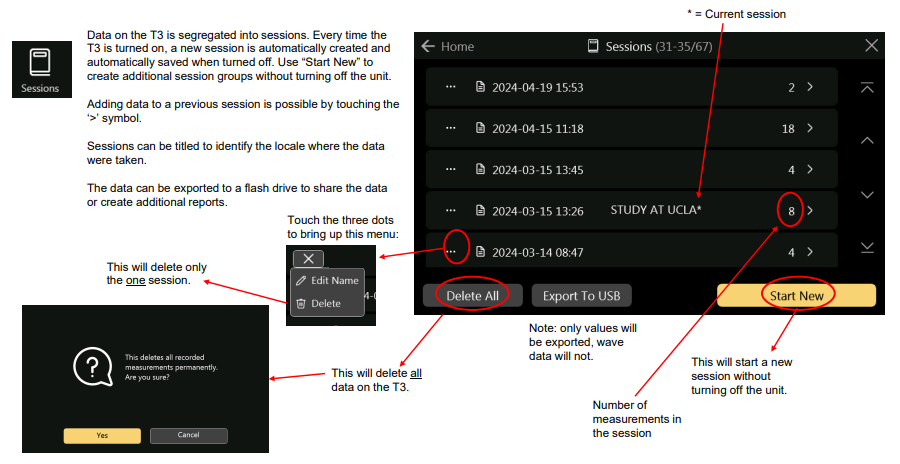 The Sessions screen (cont)