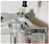 - Open the front housing of the water phantom connection box to get access to the back panel bar.