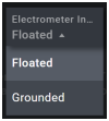 Floated: The floated input clamps the outer chamber wall on ground potential, and provides the polarization voltage through the inner (collecting) electrode. Therefore, the electrometer amplifier is on