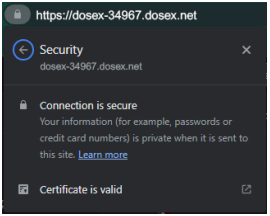 - Once the file has been uploaded to the DOSE-X, please check that the correct certificate is being used by accessing the DOSE-X remotely. To check the certificate validity, in the browser, simply click on the lock icon next to the device address.