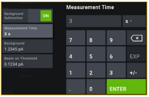Note: When turning the Bias Voltage ON/OFF or selecting Floated/Grounded, tap the Enter button to confirm. - For Sensitivity, select High (400fA – 600pA), Medium (6pA – 60nA), Low (2.4nA – 24μA), or Auto from the dropdown list.