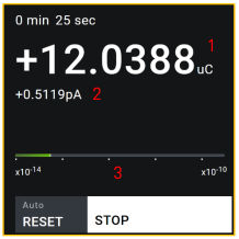 Please note, the current displayed after a measurement is finished, is integrated charge to total measurement time.