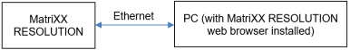 Illustration of direct connection between the MatriXX Resolution device and a PC - Switch on the device and wait until the power button LED lights green.