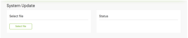 - Click the Select File button, then browse and select the new FW file. Click Start Update. The update can take up to five minutes and the device will restart afterwards.