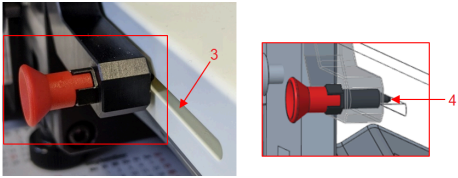 - Slightly pull out the red knob and turn and push it into the locked position; the pin should be inside the device ventilation opening (see the drawing below)