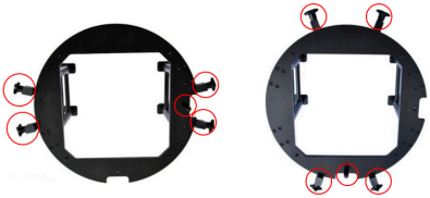 Note: The mounting parts (circled below) in the fixture can have two orientations. They can be interchanged by loosening the screws of the mounting parts and fix them in the other orientation.