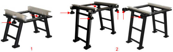- Loosen the four knobs (h1-a), moving safety clamps (h1-b) up so it is high enough that the build-up