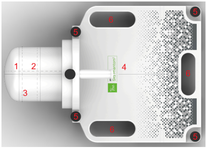 - Combined-field dashed-line at 6-cm axial offset (3) (see Section 4.1 myQA Patients Instructions for Use for Combine Fields measurement procedure)