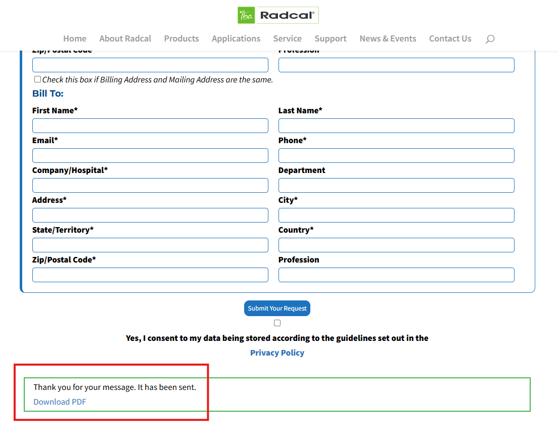 - Complete the online: https://radcal.com/service-form/ Service Request Form.