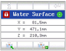 Saves current position as water surface When water surface is set, a green checkbox appears on the right side |